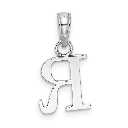 10K White Gold Polished R Block Initial Charm Pendant - (A88-432)