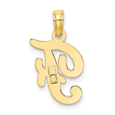 10K Yellow Gold Polished F Script Initial Charm Pendant - (A88-768)
