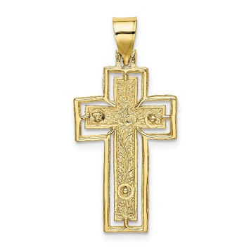 10K Yellow Gold Textured Crucifix With Frame Charm Pendant - (A88-889)