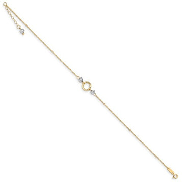 14K Two-tone Gold Circle & Bead with 1'' extension Anklet - Length 10'' inches - (C64-232)