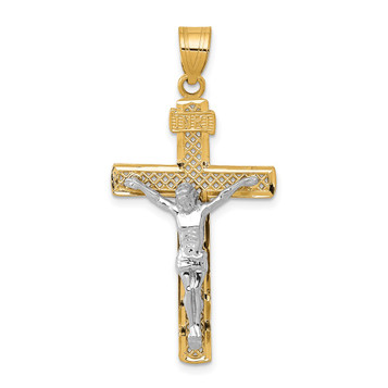 14K Two-tone Gold Diamond-cut Large Block Lattice Cross w/Crucifix Pendant - (A83-772)