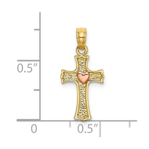 14K Two-Tone Gold With Heart In Cross Charm Pendant - (A94-173)