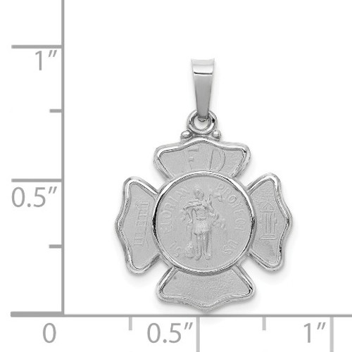14K White Gold Polished and Satin St. Florian Badge Pendant 16mm width - (B11-290)
