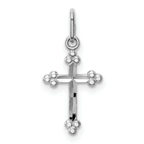 14k White Gold Polished Diamond-cut Small Budded Cross Charm - (A87-291)