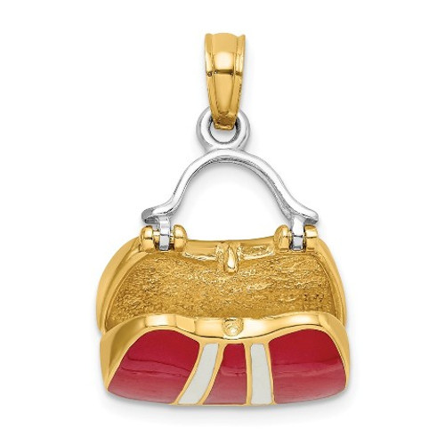 14K Yellow Gold 3-D Red Enameled Ladies Handbag Moveable Charm Pendant - (A91-331)