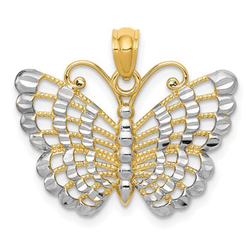 14K Yellow Gold and Rhodium Diamond-cut Butterfly Pendant - (A85-272)