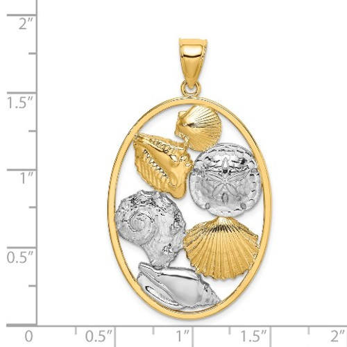 14k Yellow Gold and White Rhodium Shell Cluster In Oval Frame Charm Pendant - (A94-435)