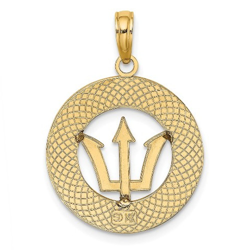 14K Yellow Gold Barbados On Round Frame With Trident Spear Charm Pendant - (A93-334)