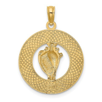 14K Yellow Gold Cape May On Round Frame With Conch Shell Charm Pendant - (A92-268)