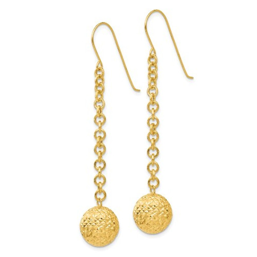 14K Yellow Gold Diamond-cut Hollow Bead Dangle Earrings - (B44-483)