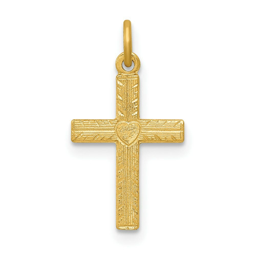14K Yellow Gold Heart Cross Charm - (B11-704)