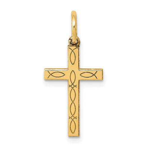 14K Yellow Gold Laser Designed Cross Charm 21mm length - (A99-994)