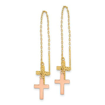 14K Yellow Gold Polished Diamond-cut Box Chain with Cross Threader Earrings - (B42-627)