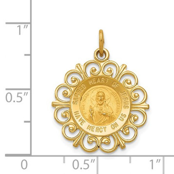 14K Yellow Gold Sacred Heart of Jesus Medal Charm - (B11-364)
