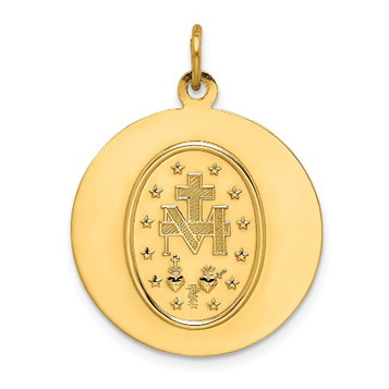 14K Yellow Gold Solid Satin Finish Medium Round Miraculous Medal - (B14-582)