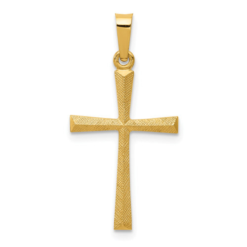 14K Yellow Gold Textured and Polished Latin Cross Pendant - (B11-636)
