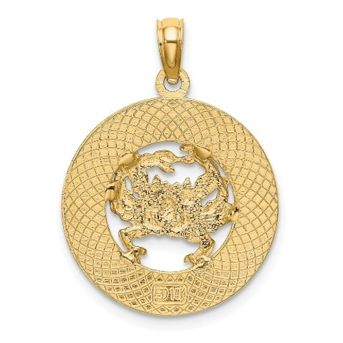 14K Yellow Gold Turks & Caicos On Round Frame With Crab Charm Pendant - (A91-644)