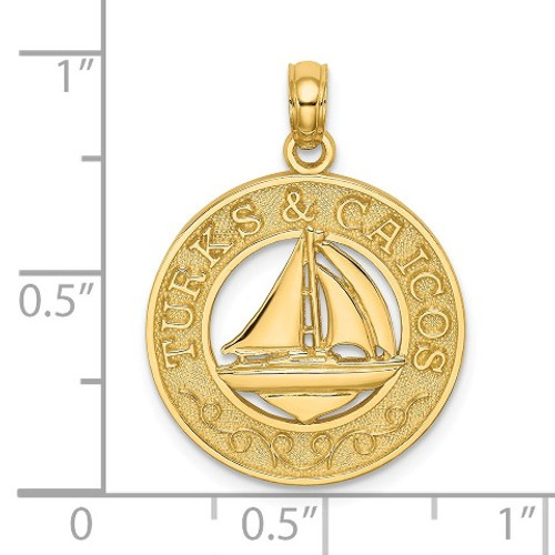 14K Yellow Gold Turks & Caicos On Round Frame With Sailboat Charm Pendant - (A92-686)