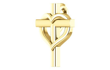 14K Yellow Gold Youth Cross with Heart Pendant - (B16-380)