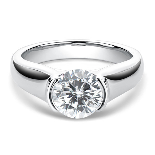 2-Carat Engagement Ring Bezel-Bar Set GRA Lab Certified D/VVS1 Round Moissanite set in 18K White Gold-plated Sterling Silver