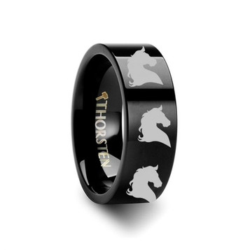 Animal Horse Print Ring Engraved Flat Tungsten Ring - 4mm - 12mm