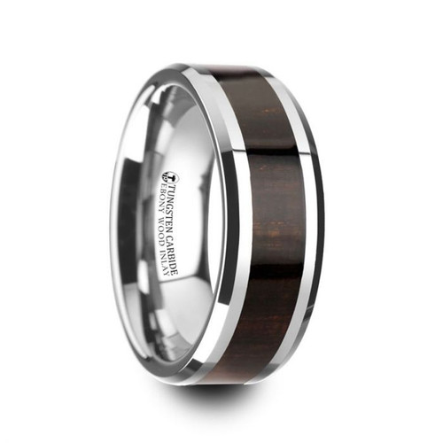 ARCANE Ebony Wood Inlaid Tungsten Carbide Ring with Bevels - 8mm ~ (G65-440)