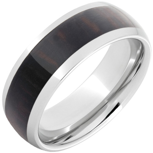 Serinium® Domed 8mm Wedding Band Exotic 5mm Wenge Wood Inlay