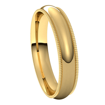 Classic solid gold wedding band, flat style, rounded comfort fit inside, with milgrain design edges. Bands that are 2mm wide and larger can be custom engraved to your specifications from Castle Wedding Bands. All Castle Wedding Bands are available with...