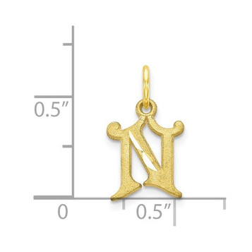 Choose Options Quick view 10K Yellow Gold Initial Letter N Charm Pendant - (A81-756) Jewelry Type: Pendants & CharmsPendant/Charm Type: Letter/NumberMaterial: Primary: GoldMaterial: Primary - Color: YellowMaterial: Primary - Purity: 10KAvg weight: 0.51 gramsCountry of origin: UNITED STATESSolidDiamond-cutSatin10K Yellow goldStampedFlat... MSRP: $160.97 $102.97 Choose Options Compare