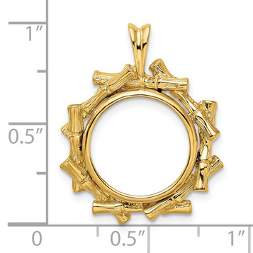 Choose Options Quick view Roy Rose Jewelry Wideband Distinguished Gold Coin Bezel Pendant Mounting - 14 18 22 27 32 Coin Size in mm - 14K Yellow Gold - Polished and Textured Overlap Bamboo - Prong Set Type with Bail Material: Primary - Purity:14KFinish:PolishedFeature:SolidMaterial: Primary:GoldMounting Type:Coin MountingsProduct Type:JewelryJewelry Type:MountingsSold By Unit:EachPendant/Charm Type:Coin BezelsGender:UnisexTexture:TexturedMaterial: Primary -... MSRP: $561.99 $539.97 - $1,339.97 Choose Options Compare