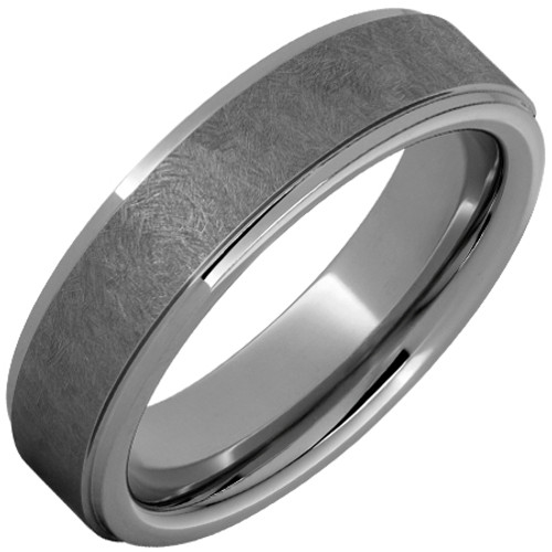 Rugged Tungsten™ Flat Grooved Edge Band with Sentinel Finish 6mm or 8mm Wedding Band