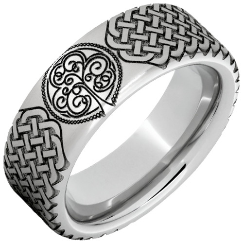 Serinium® Pipe Cut 8mm Wedding Band with Celtic Dublin Rose Laser Engraved Design