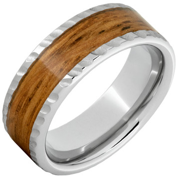 Serinium® Pipe Cut 8mm Wedding Band with Single Malt Barrel Aged Wood Inlay Notched Finish