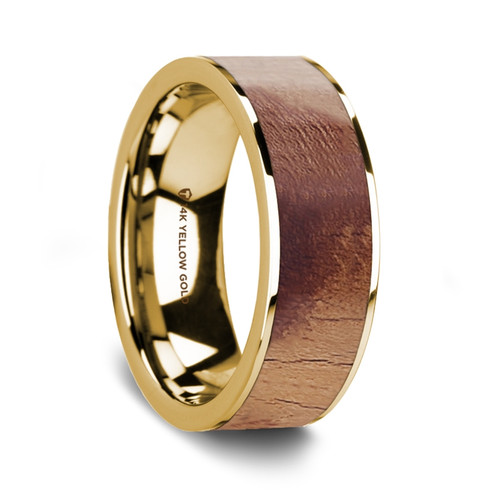 Flat Polished 14K Yellow Gold Men's Wedding Band with Olive Wood Inlay - 8 mm ~ (G65-952)