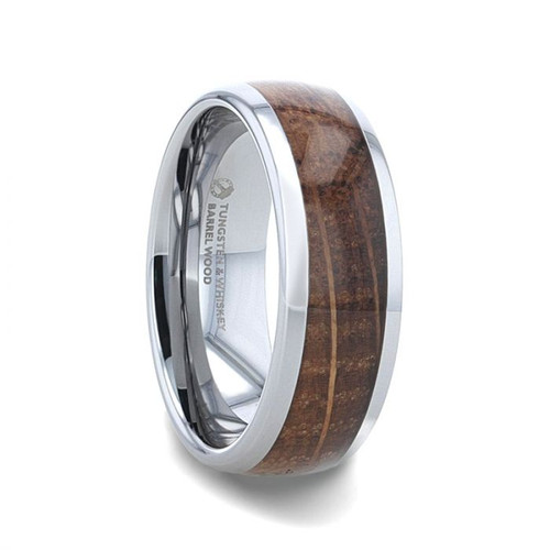 FORMENT Tungsten Whiskey Barrel Inlaid Made From Genuine Whiskey Barrels Domed Polished Wedding Ring - 8mm