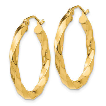 Gold Hoop Earrings 14k Yellow White Gold Polished Twisted Hoop Earrings 3mm Thickness