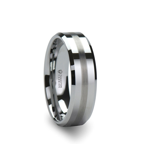 GRENOBLE Beveled Tungsten Carbide Ring with Brushed Stripe - 6mm & 8mm