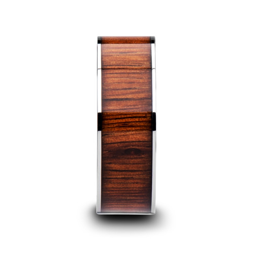 KALANI Flat Tungsten Carbide Wedding Band with Rare Koa Wood Inlay and Polished Edges - 6mm - 10mm