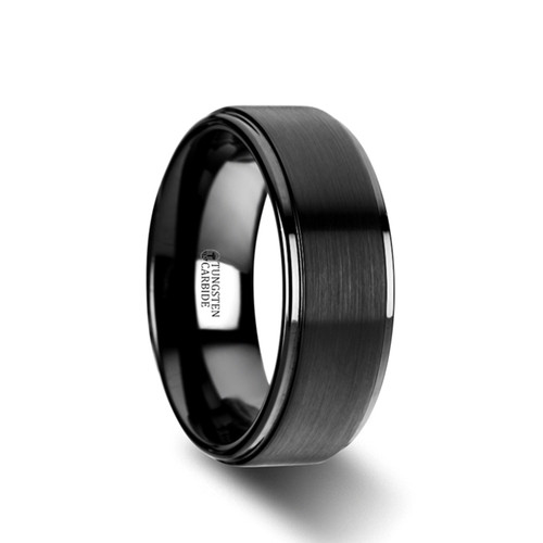 ORION Flat Black Tungsten Ring with Brushed Raised Center & Polished Edges - 6mm & 8mm