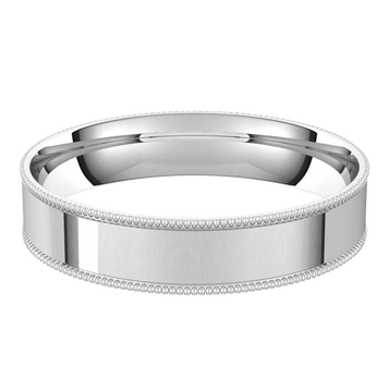 Platinum 5mm Flat Comfort Fit Milgrain Edge Wedding Band