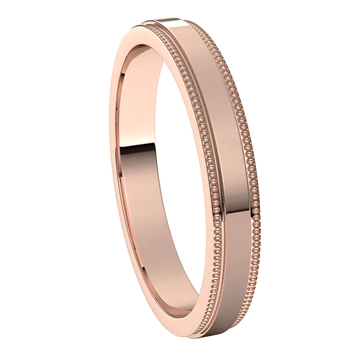 Rose Gold 3mm Flat Milgrain Step Edge Wedding Band