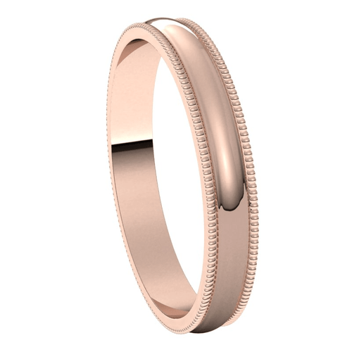 Rose Gold 3mm Lightweight Milgrain Edge Wedding Band