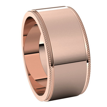 Rose Gold 9mm Flat Milgrain Step Edge Wedding Band