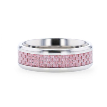 SEQUIOA Titanium Red Wood Inlaid Flat Wedding Ring - Polished Beveled Comfort Fit - 8mm