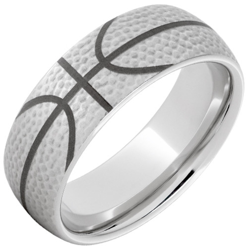 Serinium® Domed 8mm Wedding Band with Basketball Laser Design Engraving