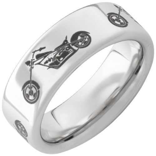 Serinium® Pipe Cut 8mm Wedding Band with Motocycle Chopper Design Laser Engraving