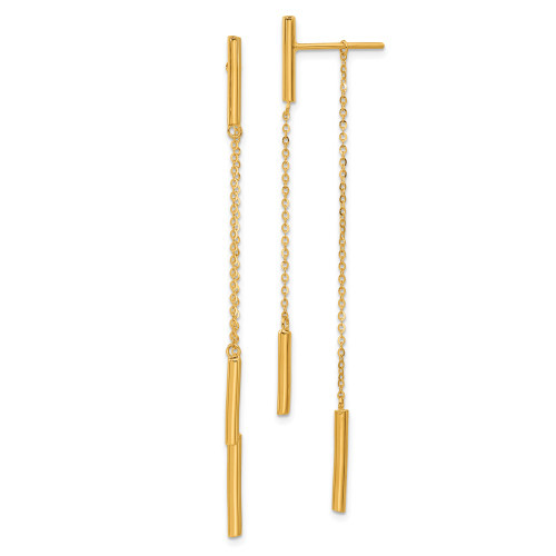 Introducing our stunning Solid 24K Gold Polished Double Bar with Au900 Back and Post Dangle Earrings, featuring a polished finish with a laser design for a unique touch. This features a polished finish, adding a touch of sophistication to any outfit.