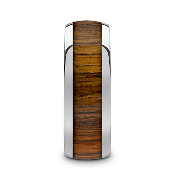 TIGRE Tungsten Carbide Polished Finish Men’s Domed Wedding Band with Zebra Wood Inlay - 8mm ~ (J65-200)