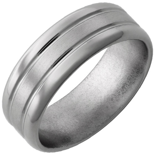 | Satin Finish Titanium 8mm Comfort Fit Wedding Band with Double Grooves |