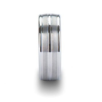 VANCOUVER Triple Grooved White Tungsten Carbide Ring - 8mm ~ (J65-163)